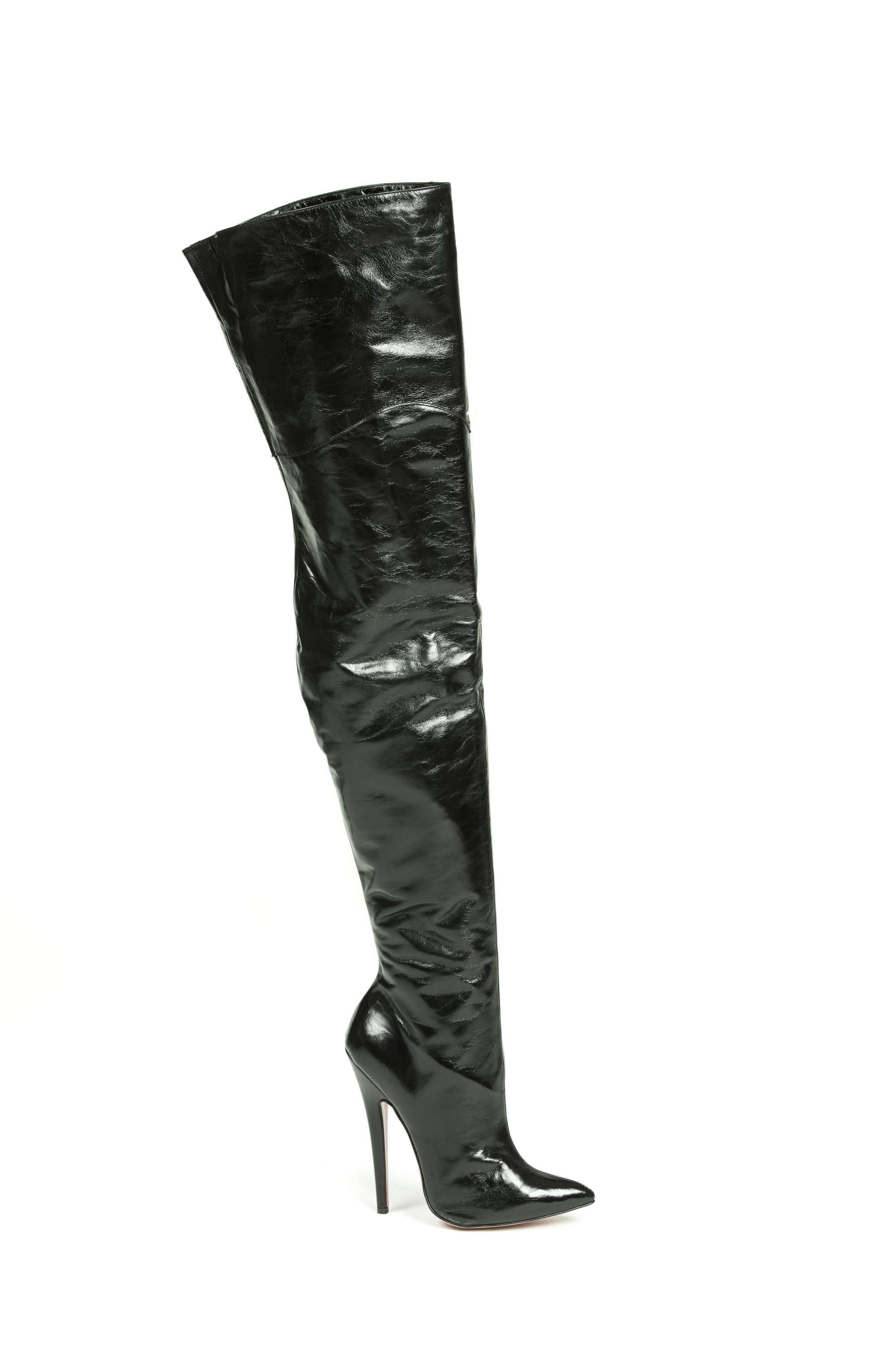 Stivale a coscia in vera pelle nera.