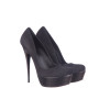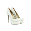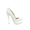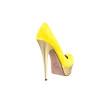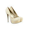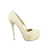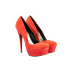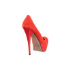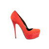 Décolleté in camoscio con plateau esterno in vera pelle cocco. Disponibile nella varianti colore: camoscio rosso e plateau ricoperto pelle rossa stampata cocco, camoscio nero e plateau ricoperto pelle nera stampata cocco, camoscio beige e plateau ricoperto pelle beige stampata cocco, camoscio bianco e plateau ricoperto pelle bianca stampa lucertolina, camoscio giallo e plateau ricoperto pelle oro stampa lucertolina in rilievo, camoscio panna e plateau ricoperto pelle panna; Tacco a spillo laccato in tinta, altezza 16 cm. Plateau altezza 4 cm. Suola tunit rosa.
