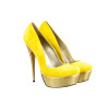 -Camoscio giallo e plateau ricoperto pelle oro stampa lucertolina in rilievo;