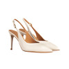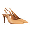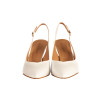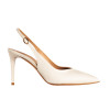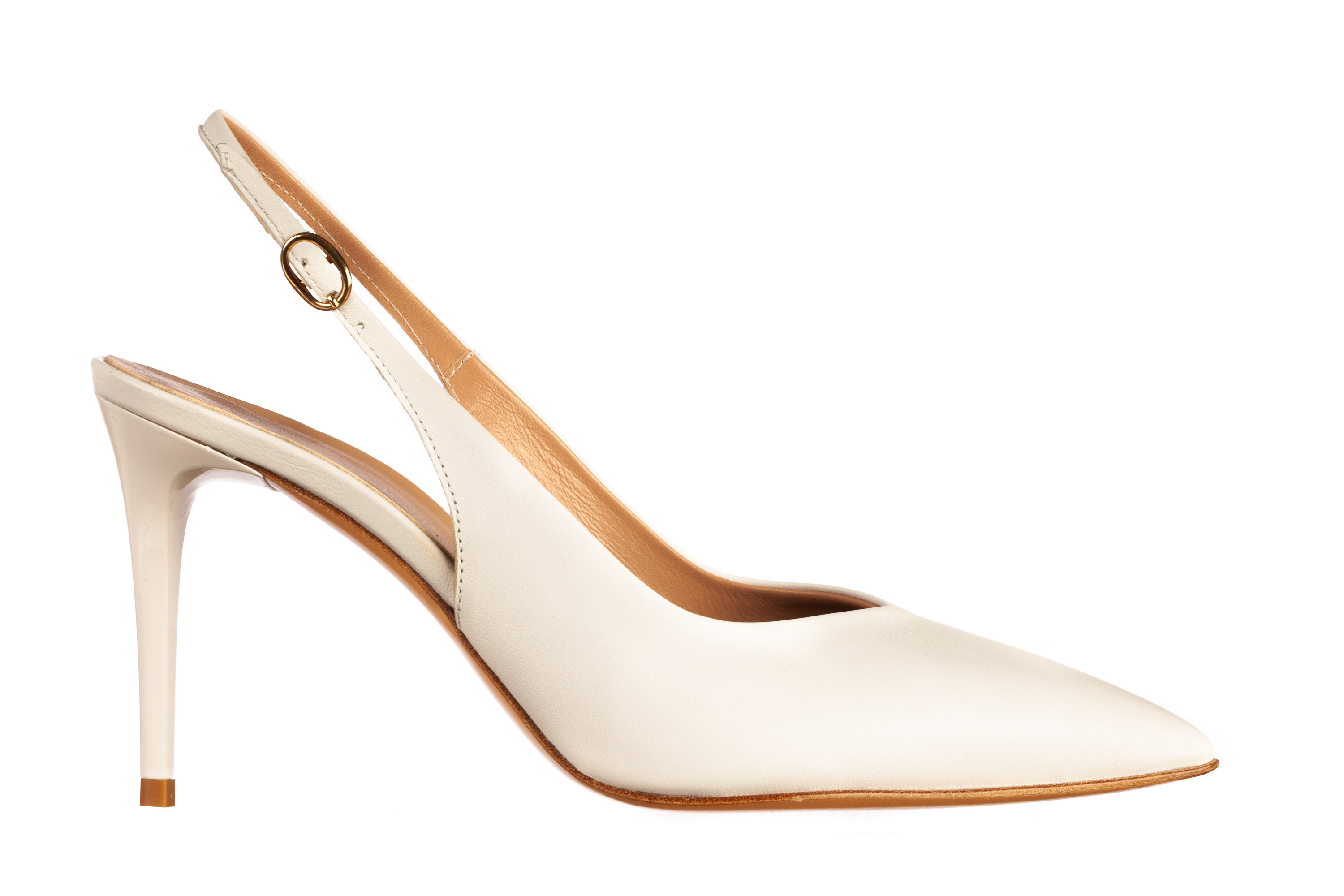 Abbinabili ad ogni look grazie alla loro versatilità, le décolleté slingback “modello Chanel” sono perfette sia nella variante casual, che prevede pantaloni di diversi tipi, tra cui jeans e i pantaloni a palazzo, che in quella più elegante con gonne e shorts. Disponibile nelle varianti colore nude e bianca. Tacco laccato in tinta. Suola in vero cuoio naturale. Altezza tacco 8 cm.