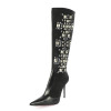 Stivale altezza ginocchio realizzato in vitello, con gambale in camoscio e borchie colore nichel.