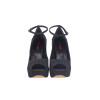 Scarpa aperta in punta con cinturino alla caviglia realizzata in tessuto glitterato nero. Plateau interno. Tacco laccato glitterato nero altezza 13 cm secondo la taglia. Suola tunit beige.