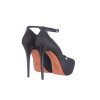 Scarpa aperta in punta con cinturino alla caviglia realizzata in tessuto glitterato nero.