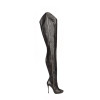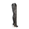 Stivale a coscia in pelle bottalata con zip esterna funzionale in metallo. Tacco laccato nero. Plateau interno 2 cm. Suola tunit naturale.