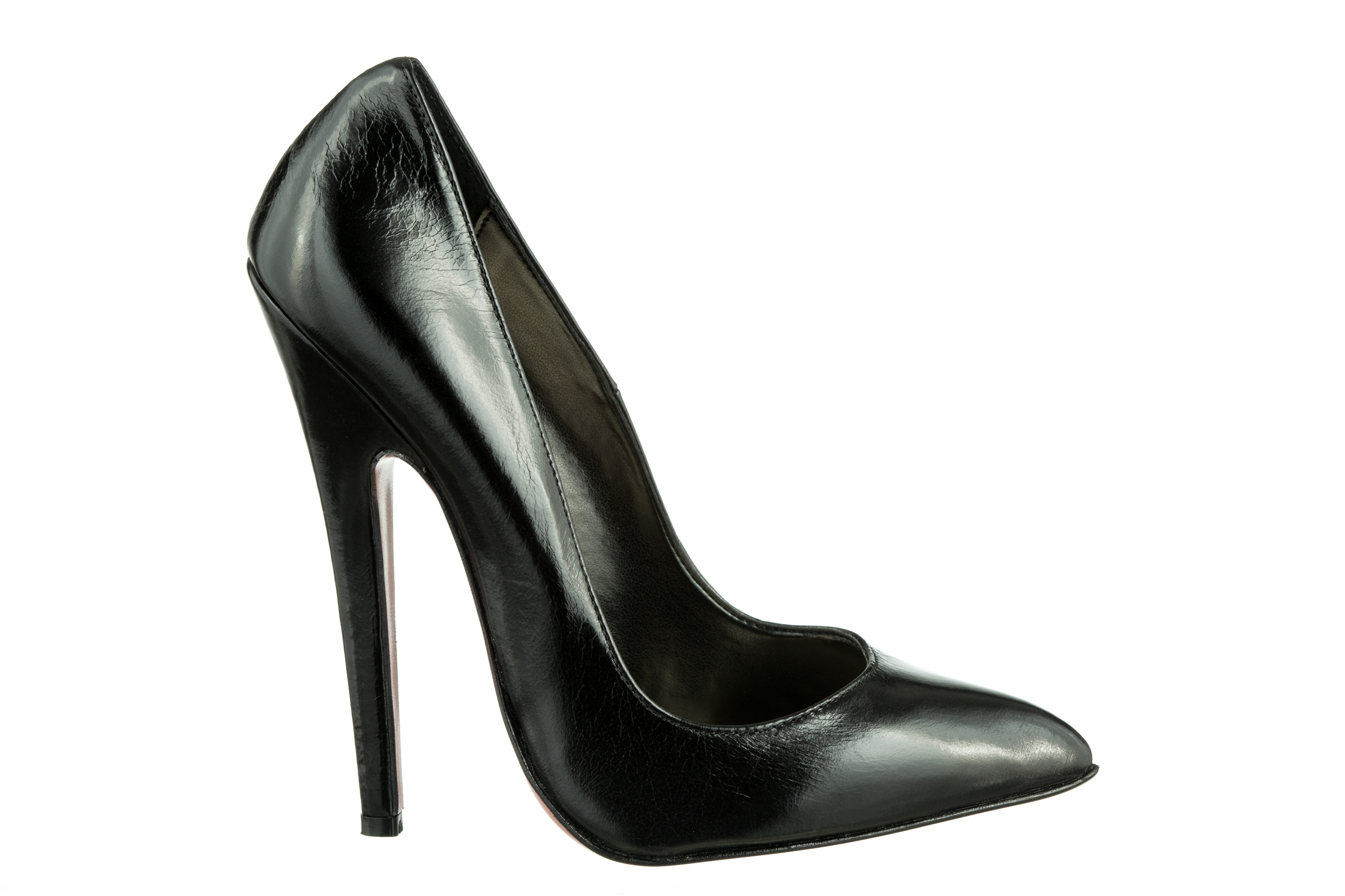 Decolletè in pelle nera. Tacco a spillo ricoperto altezza 15 cm. Suola tunit rosa.