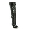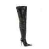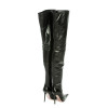 Stivale a coscia in vera pelle nera. Tacco laccato nero. Suola tunit rosa.