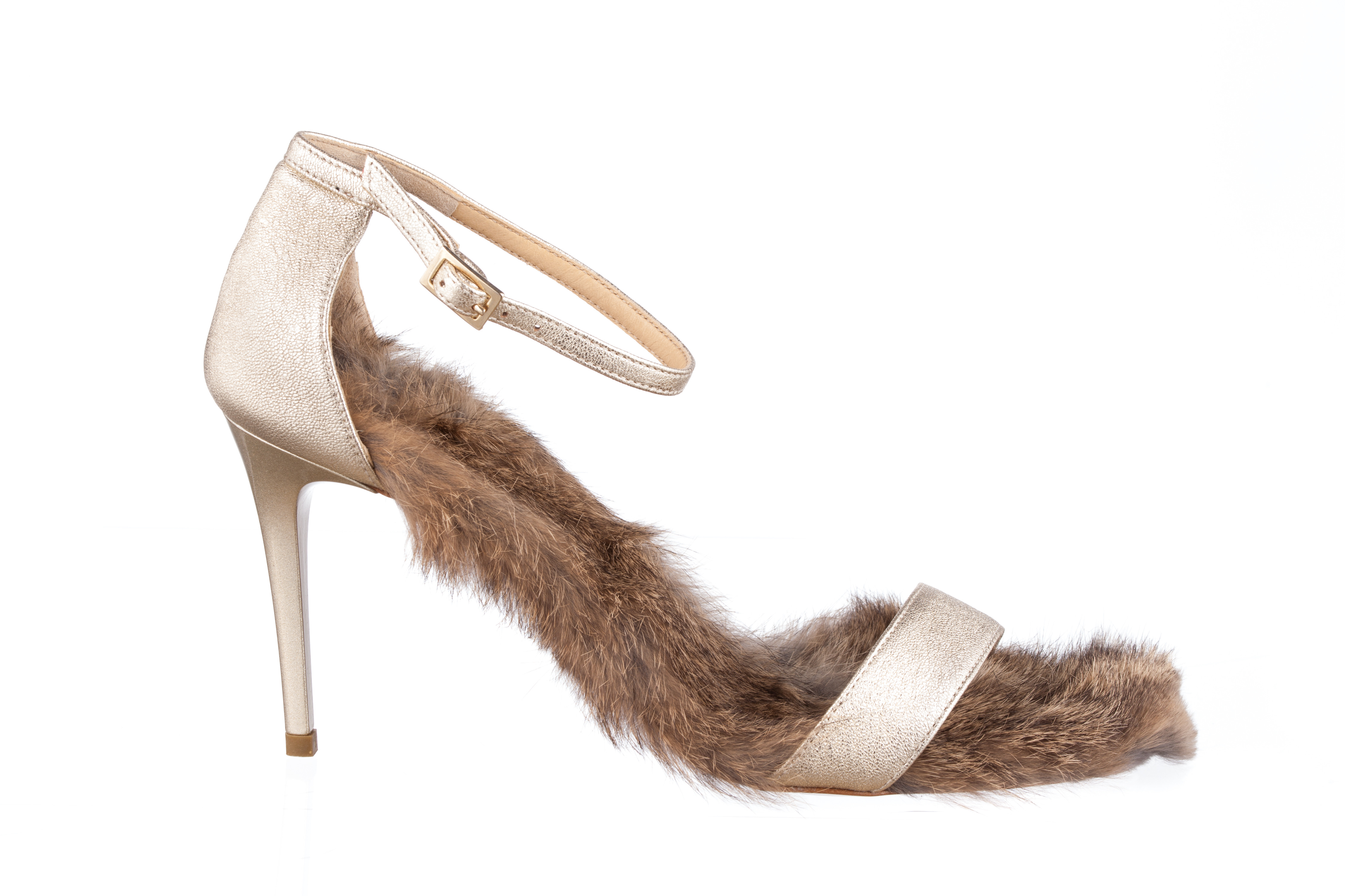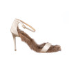 Sandalo con tacco in pelle laminata. Disponibile nelle varianti colore: -laminato oro con sottopiede lapen beige -laminato rame con sottopiede lapen bordeaux Fodera vera pelle. Tacco altezza 7 cm. Tacco laccato in tinta. Suola vero cuoio naturale. Taglie dal 43 al 45 disponibili su richiesta