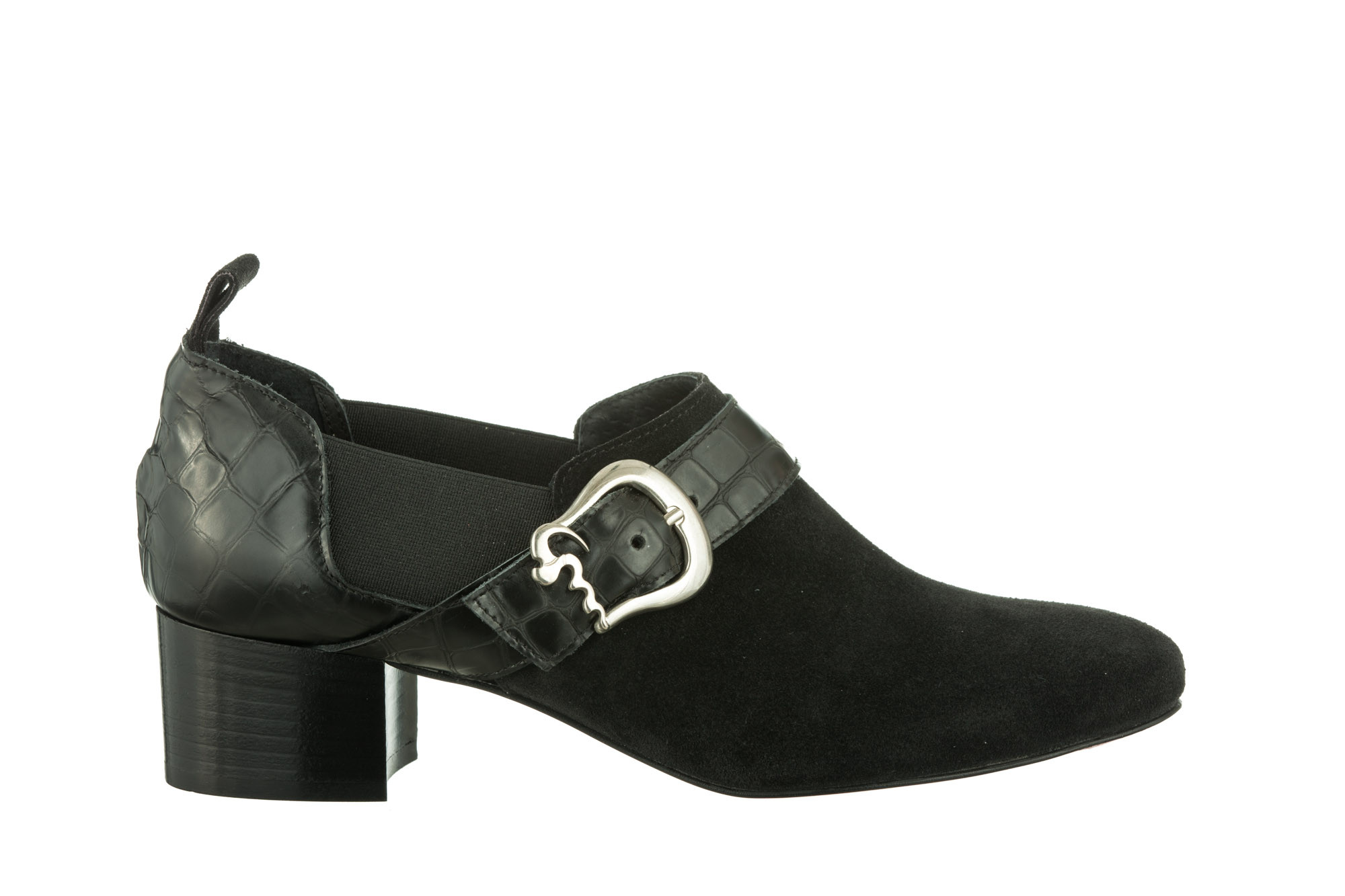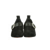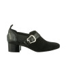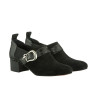 Scarpa in camoscio nero. Tallone e cinturino in pelle tipo cocco nero. Comoda e con una confortevole calzata grazie all'elastico nero laterale. Tacco in cuoio nero altezza 4 cm. Suola rossa in tunit con stampa floreale nera.